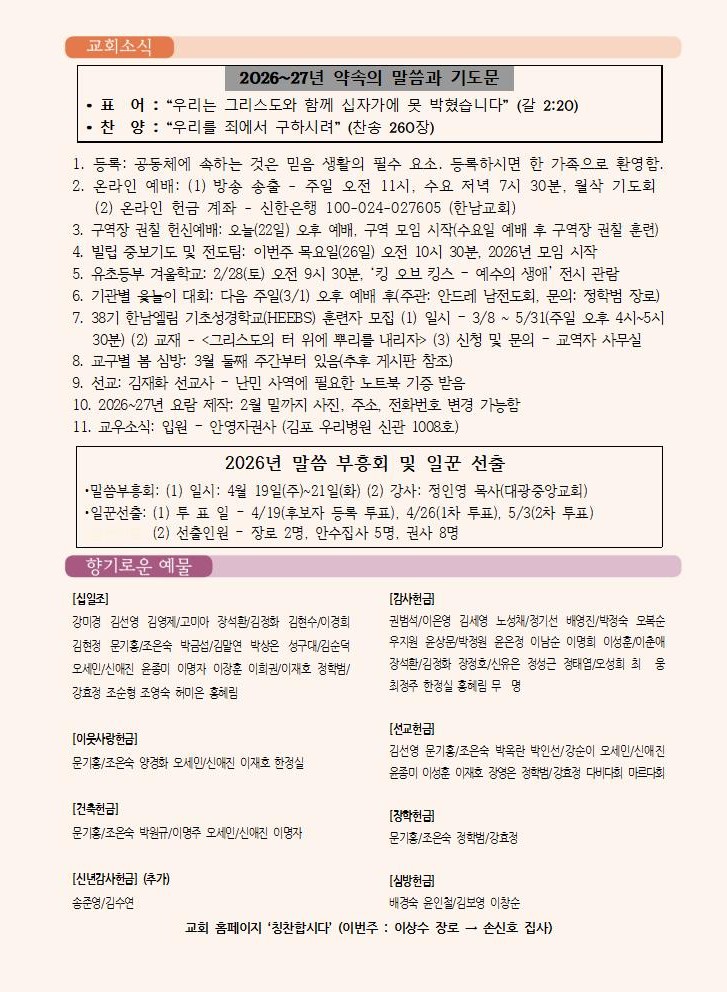 2026년 2월 22일 교회소식