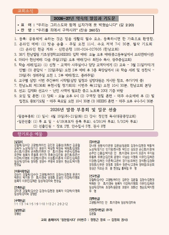 2026년 3월 8일 교회소식