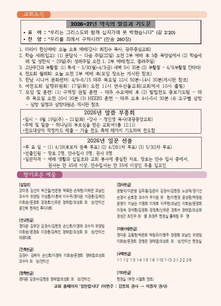 2026년 3월 15일 교회소식