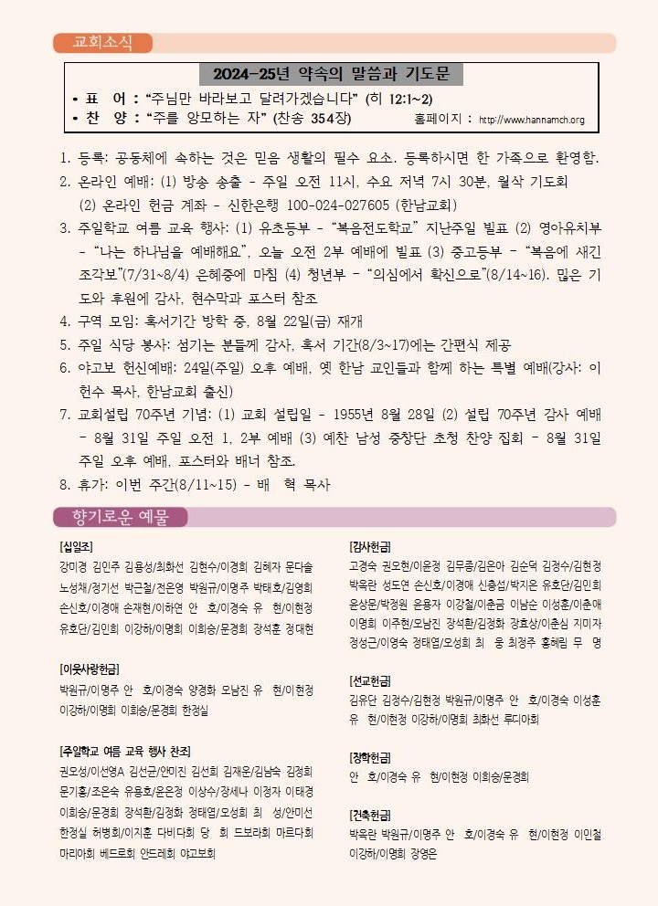 2025년 8월 10일 교회소식
