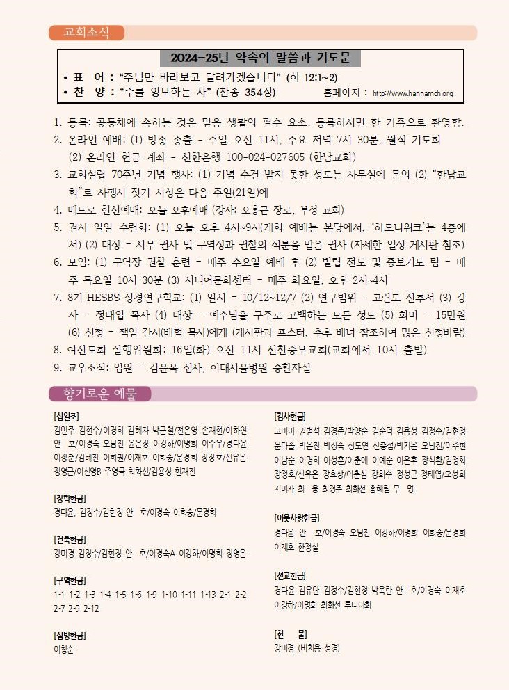 2025년 9월 14일 교회소식